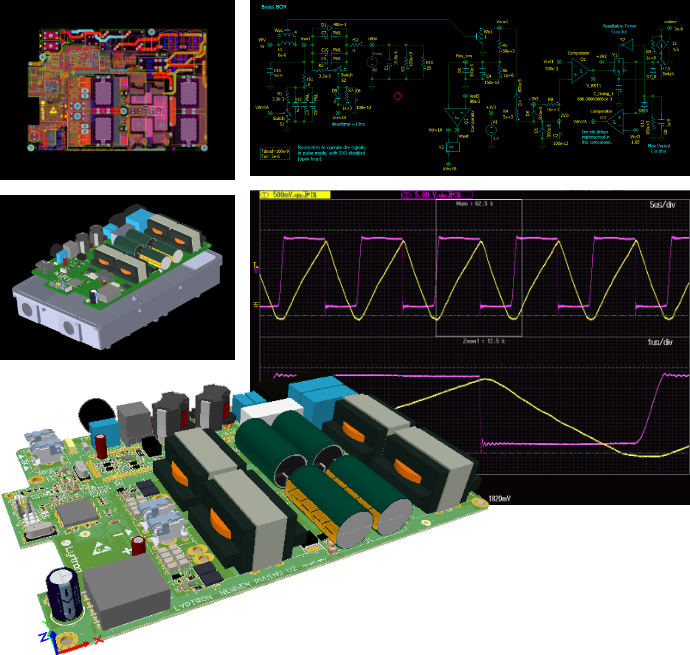We design and develop electronic hardware and firmware per specifications / requirements. We also offer measurement services for concept validation, matching project needs. We can provide expertise across wide applications, including integrated logic programming (FPGA, CLPD), microcontrollers, DSP, optical-fiber cable communications (RS232 / 485, USB, ethernet, PLC), RF (WiFi, ZBee, Bluetooth, cellphone), digital design, analog design, data acquisition and processing, power systems design (DC/DC. AC/AC, DC/AC and DC/AC converters, power drives, etc.), design and simulation of magnetic components, industrial control, advanced digital control, non-linear process control, remote sensing (IoT), PCB design, dynamic process modelling and electronic systems simulations, among others.